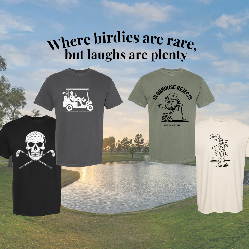 You clock in all week so you can clock out with a bucket and the boys. Clubhouse Rejects is for after-work buckets, garage coolers, porch bourbon, smoker Saturdays, and 19th-hole stories. Easy, broken-in tees with attitude—made to live where the laughs are louder than the score.