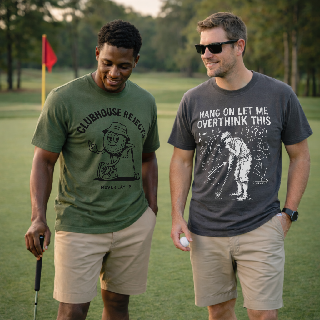 Every Clubhouse Rejects T Shirt is printed on the garment-dyed, heavyweight 100% ring-spun cotton 1717. It’s that soft, broken-in feel from day one with the sturdy weight you want for range nights and weekend rounds no flimsy blanks, no poly blends.